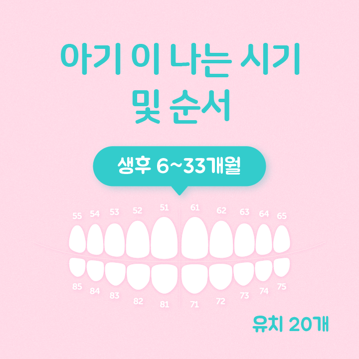 | 02 | 생후 8~12 개월 | 위턱 가운데 앞니 2개 | 51번, 61번 | |