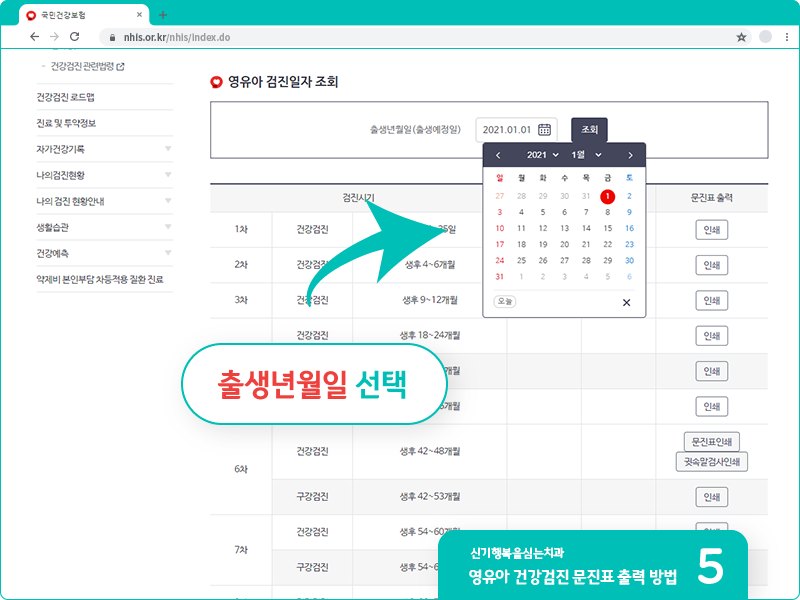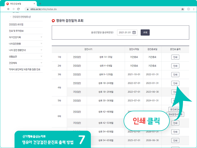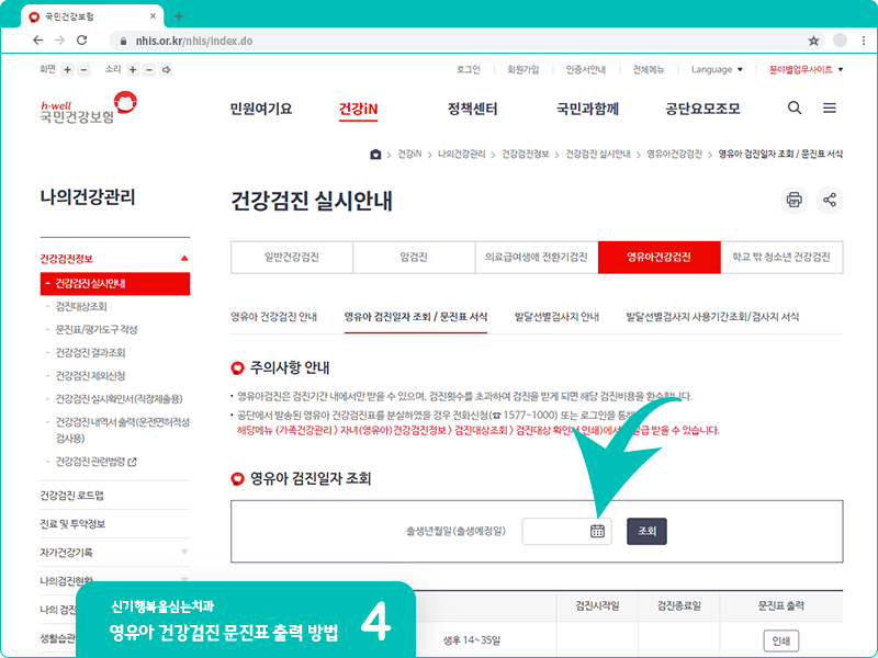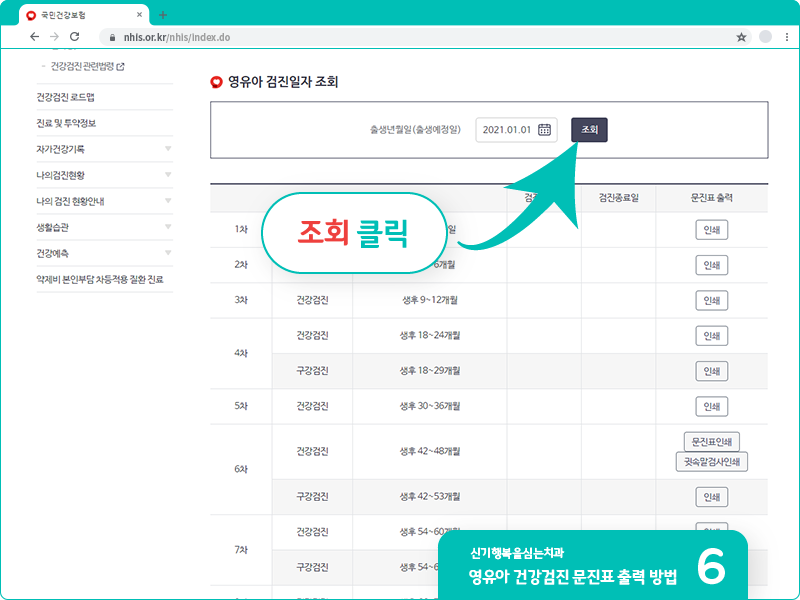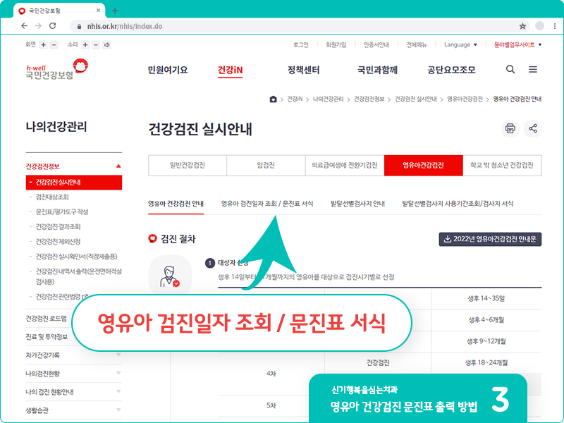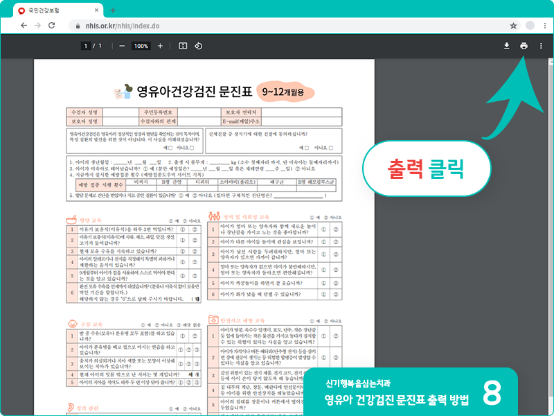 영유아 건강검진 문진표 출력 방법