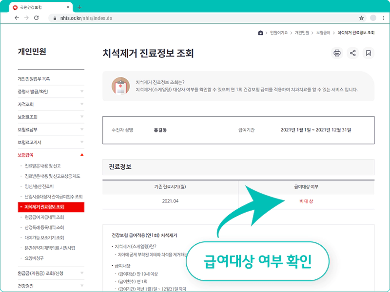 스케일링 보험적용 대상자 조회 방법