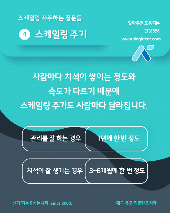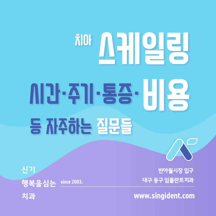 안녕하세요. 대구 동구 신기 행복을 심는 치과 전해드리는 치아 스케일링 정보입니다. 오늘은 치과 스케일링 비용과 보험적용 기준, 그리고 스케일링 시간, 주기, 통증, 마취 등 치석제거에 관해 자주 문의하시는 내용들을 안내해드립니다.
