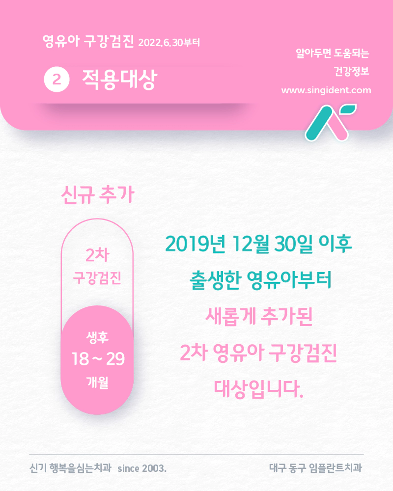 대구 동구 구강검진 지정 치과인 신기행복을심는치과에서 전해드리는 구강검진 이야기입니다. 오늘은 영유아 구강검진 확대 시행 소식에 대해 전해드립니다.