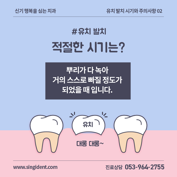 안녕하세요. 대구 동구에 위치한 신기 행복을 심는 치과입니다. 오늘은 유치 발치의 적절한 시기와 주의사항에 대해 알려드립니다.