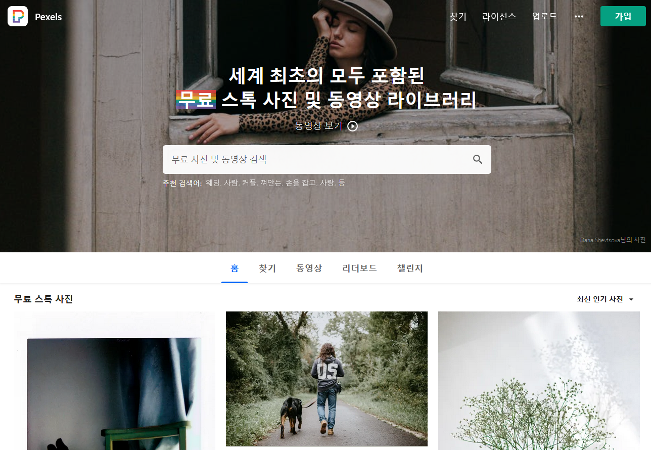 언스플래쉬와 사이트 형태, 사진 스타일, 다운로드 방식 등에서 상당히 유사한 무료 이미지 사이트입니다. 다만, 언스플래쉬와 달리 한국어를 지원하는 사이트이기때문에 한국어 검색이 가능하며 사진 이외에 무료 비디오 영상도 제공합니다.