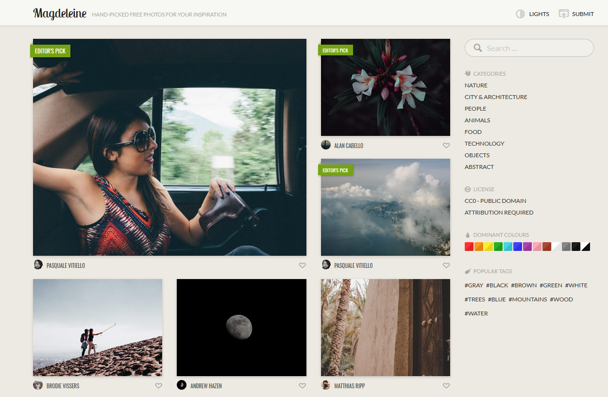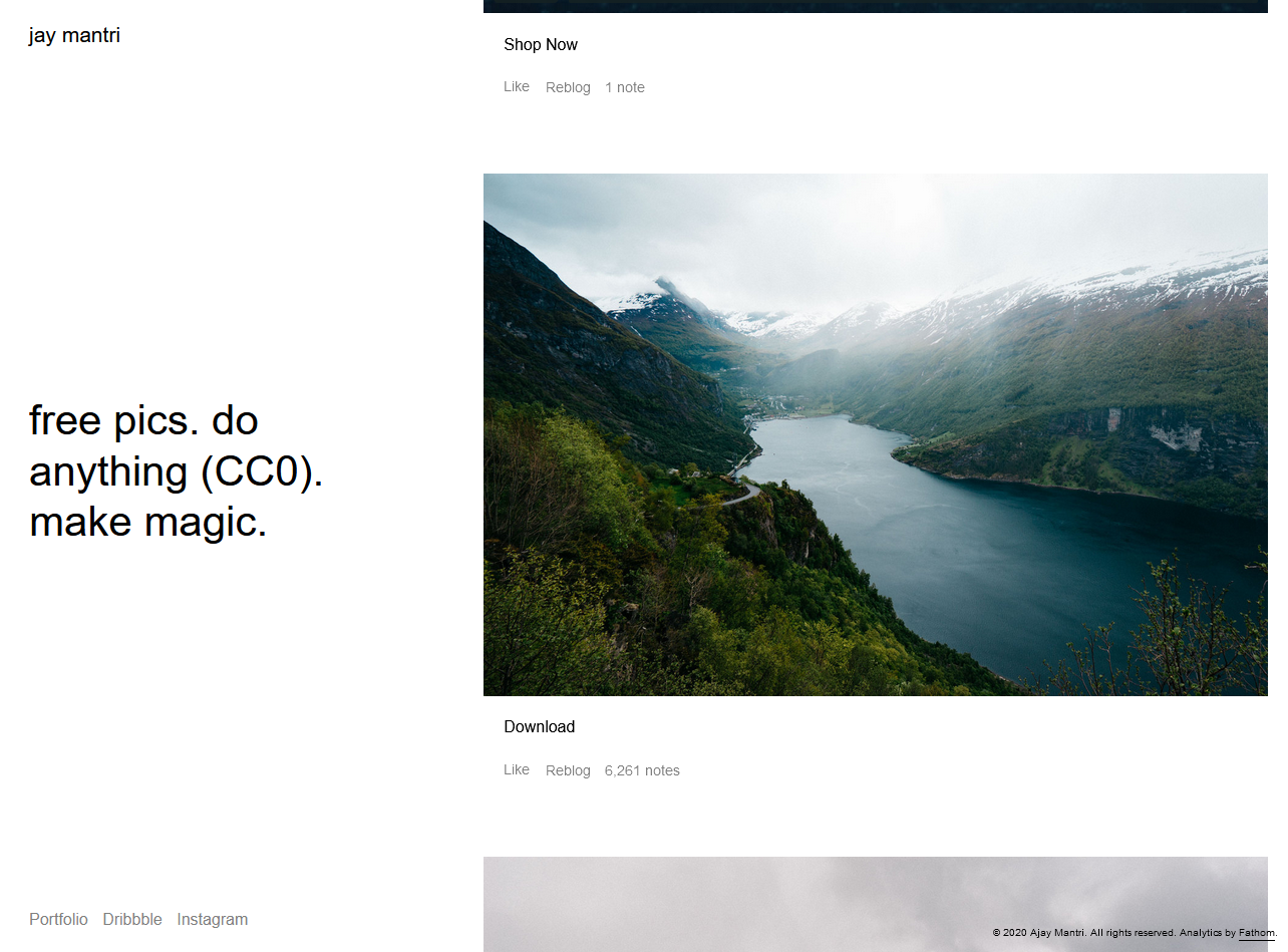그래픽 디자너인 작가가 직접 찍은 사진을 올리는 개인 사이트입니다. 사진뿐만 아니라 무료 비디오로 다운로드 할 수 있습니다.