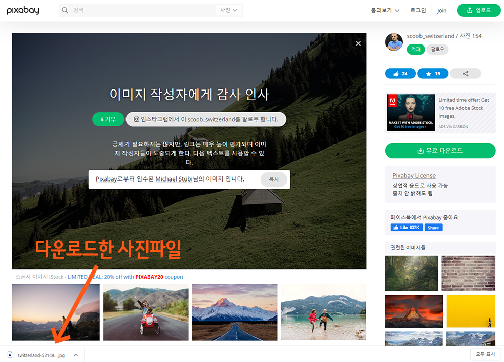 ▶ 픽사베이 무료이미지 다운로드 방법