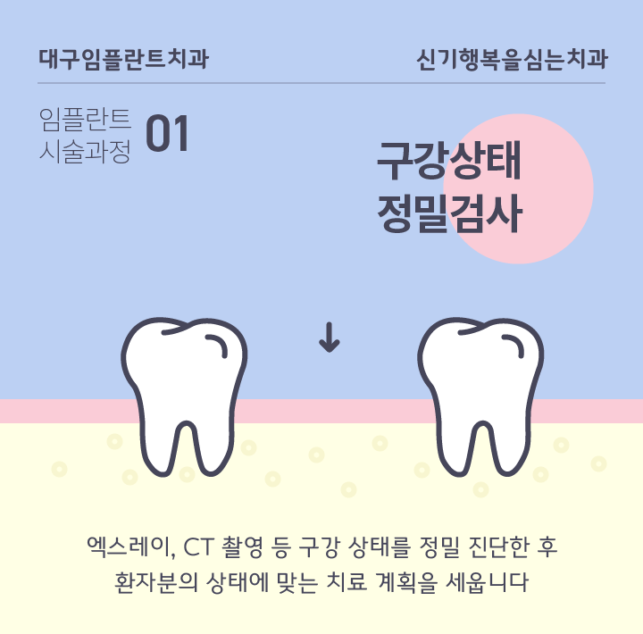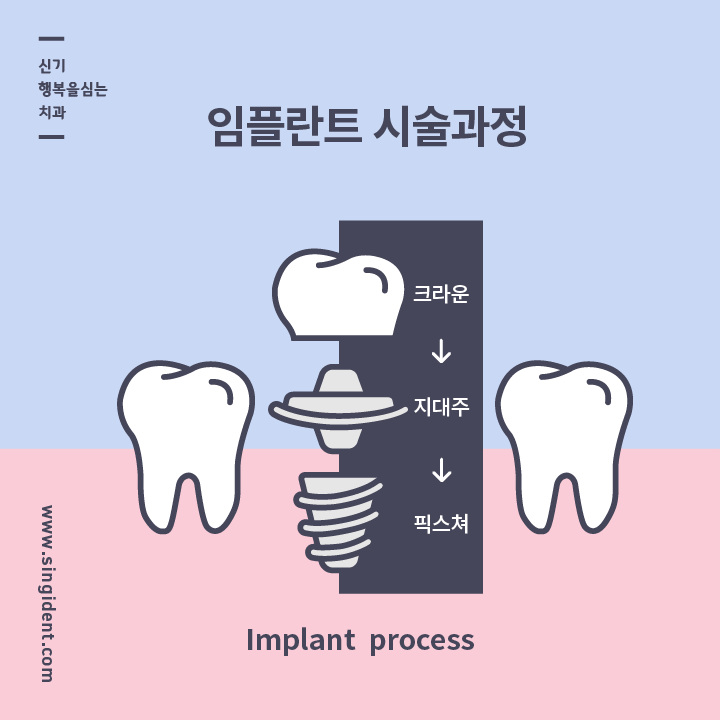 안녕하세요. 대구 동구 임플란트치과 신기 행복을 심는 치과에서 전해드리는 치아 임플란트 이야기입니다. 오늘은 일반적인 임플란트 시술 과정과 단계별 소요 시간에 대해 알려드립니다.