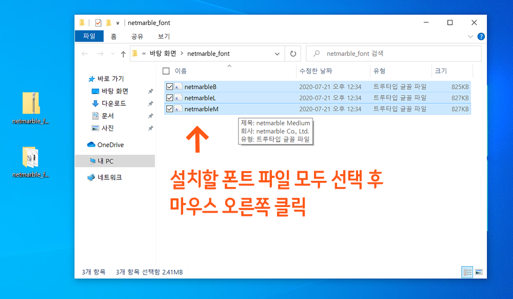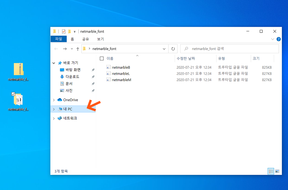 7> 아래와 같이 내 컴퓨터에 설치되어있는 netmarble 글꼴 파일이 나타납니다.