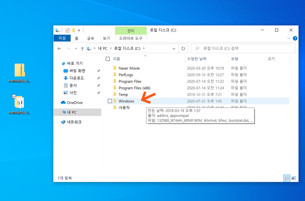 3> Windows 폴더를 클릭합니다.