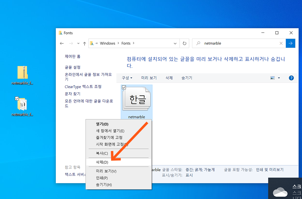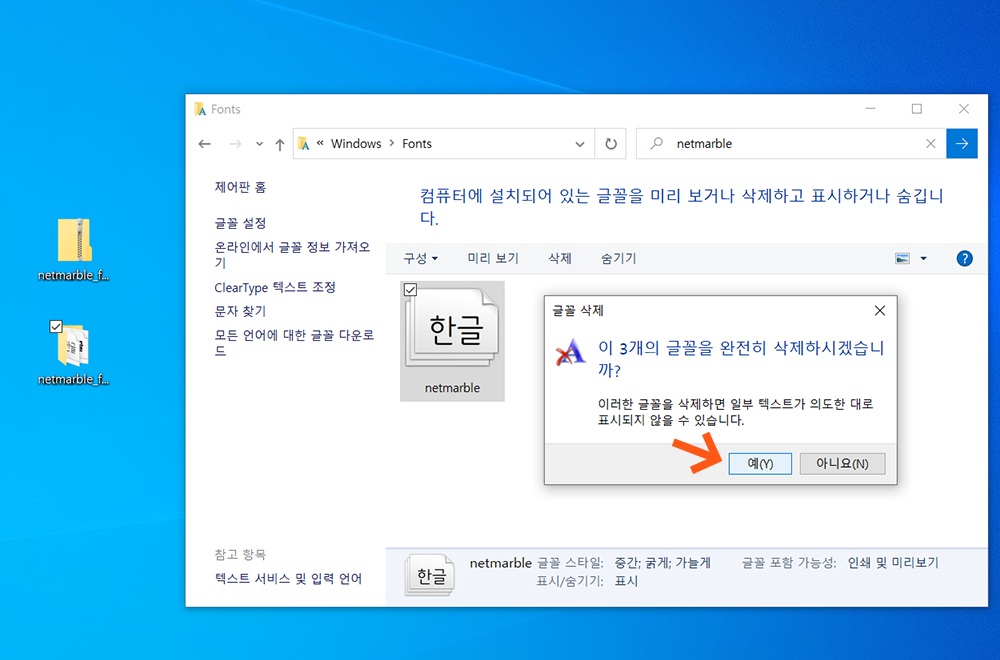 3-4> 넷마블 폰트 파일 삭제가 완료되었습니다.