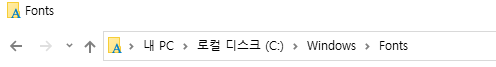 앞서 설치한 폰트를 삭제하려면 윈도우10 Fonts 폴더에서 해당 폰트 파일을 직접 삭제해 주어야합니다. 폰트 파일이 설치된 상세 경로는 C:\Windows\Font입니다.