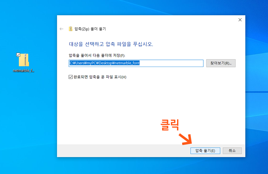 이번 포스팅에서는 한글 글꼴 파일을 내 컴퓨터에 설치하는 방법과 삭제하는 방법에 대해 알려드립니다. 구체적으로 인터넷에서 다운로드한 무료 한글 폰트인 넷마블 폰트를 윈도우10에 글꼴 추가하는 과정을 예를 들어 설명하겠습니다.