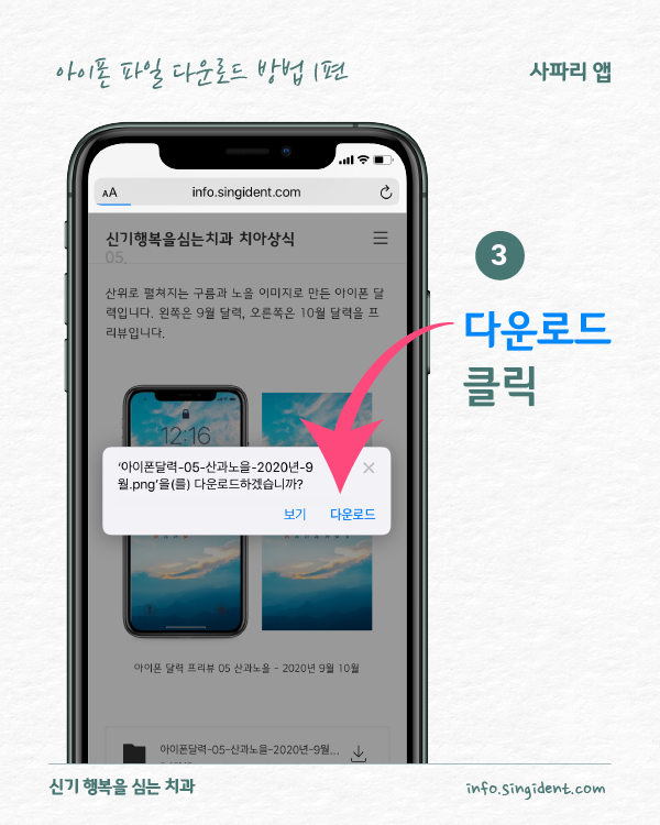 안녕하세요. 대구 동구 신기 행복을 심는 치과에서 전해드리는 생활정보 아이폰 사용법 시리즈입니다. 이번 포스팅에서는 아이폰으로 인터넷에서 파일을 다운로드할 때, 파일이 저장되는 폴더