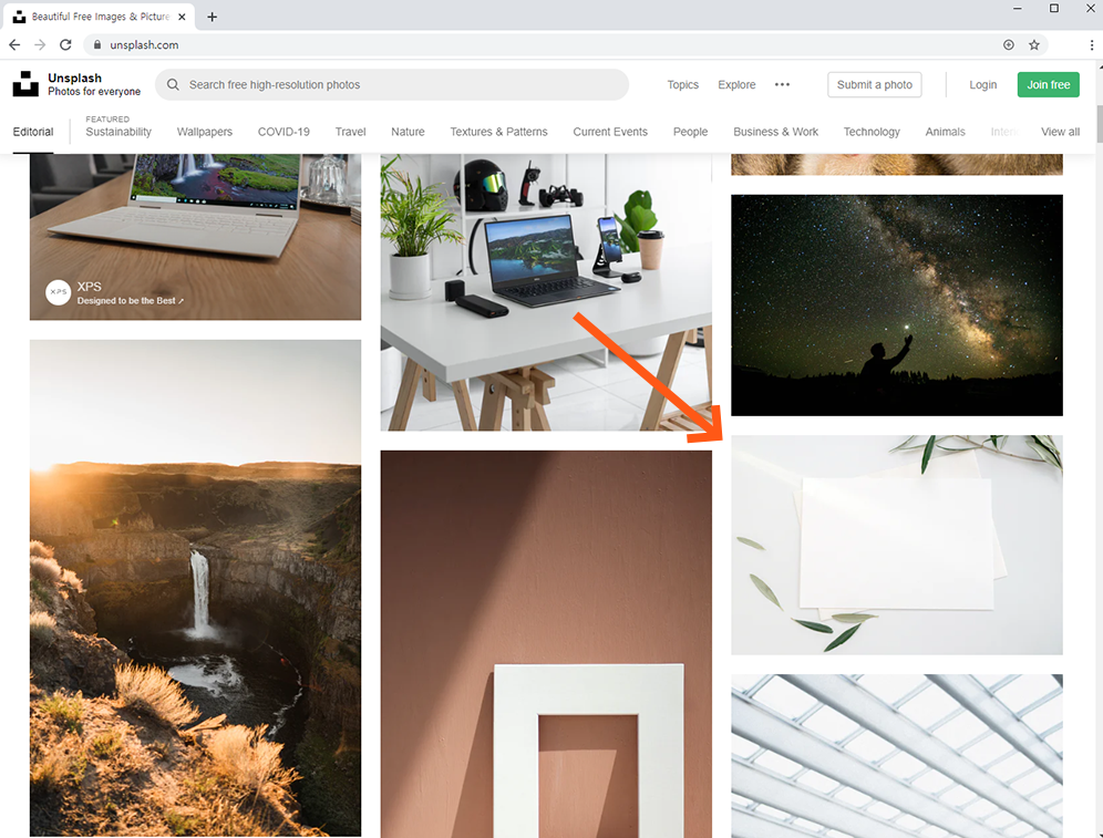 1. 먼저 마음에 드는 사진을 고릅니다. 다운로드할 사진을 정했다면 해당 사진 위로 마우스 가져갑니다.
