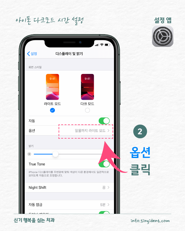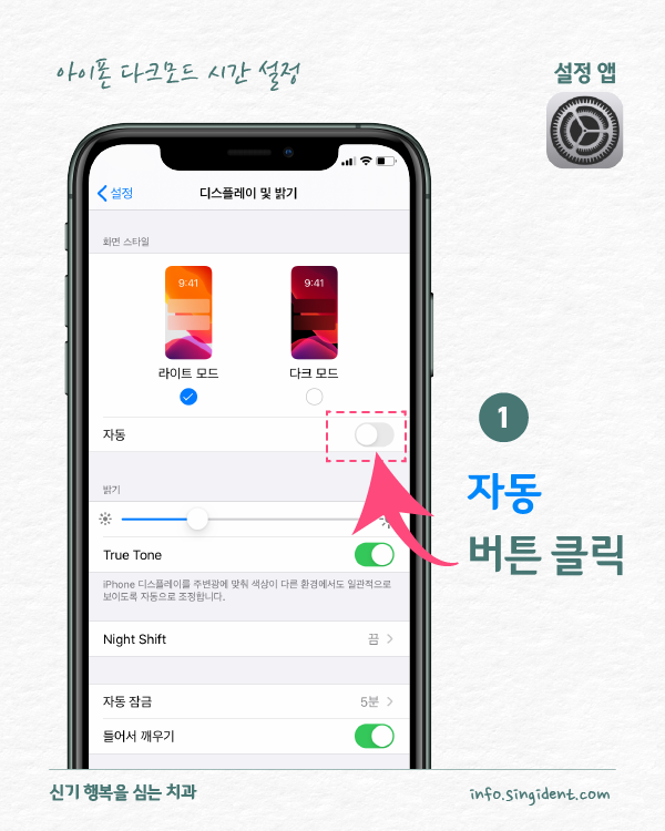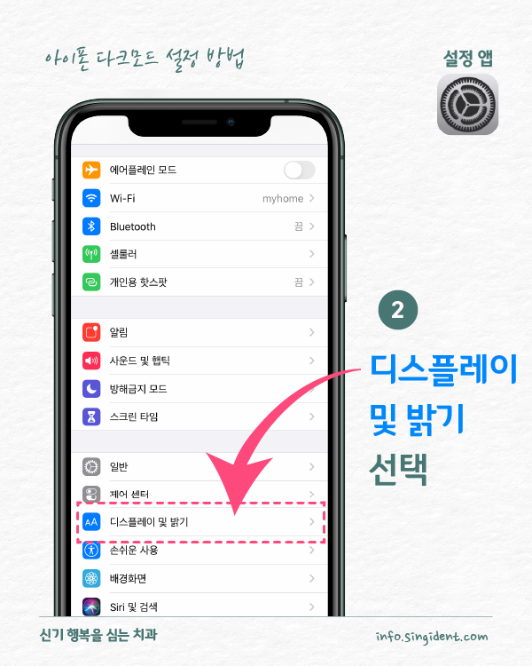 안녕하세요. 대구 동구 신기 행복을 심는 치과에서 전해드리는 생활정보 이야기, 아이폰 사용법 시리즈입니다. 오늘은 아이폰 다크모드 설정 및 방법과 특정 시간에만 다크모드 적용하는 방법, 그리고 다크모드 시 배경화면 어둡게 하는 방법에 대해 알려드립니다.