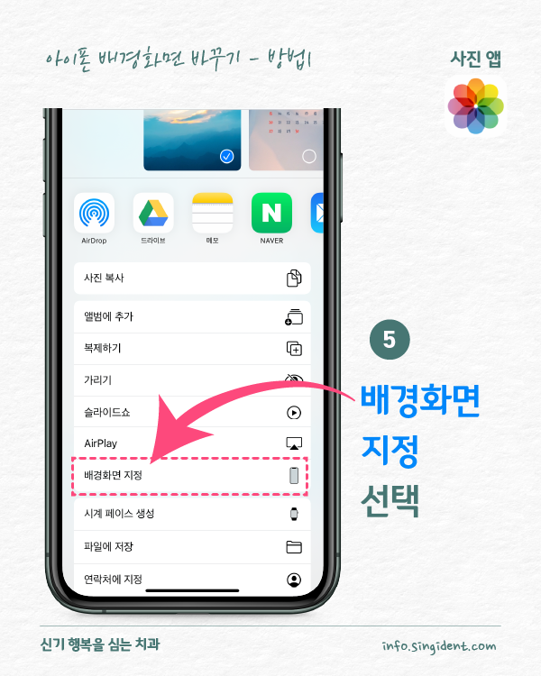 - 사진 앱에서 선택한 이미지를 배경화면으로 지정하는 방법