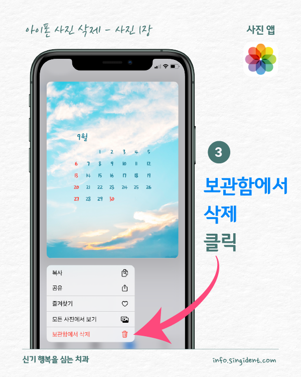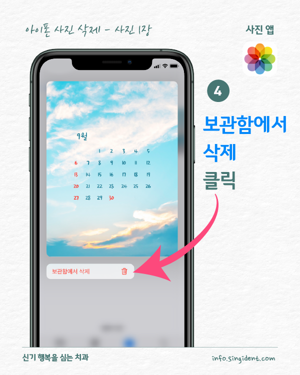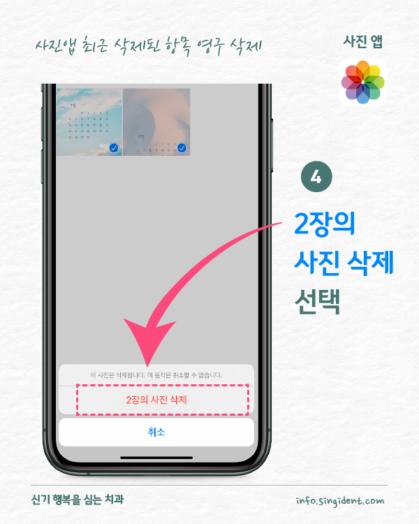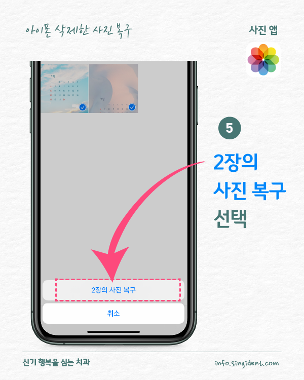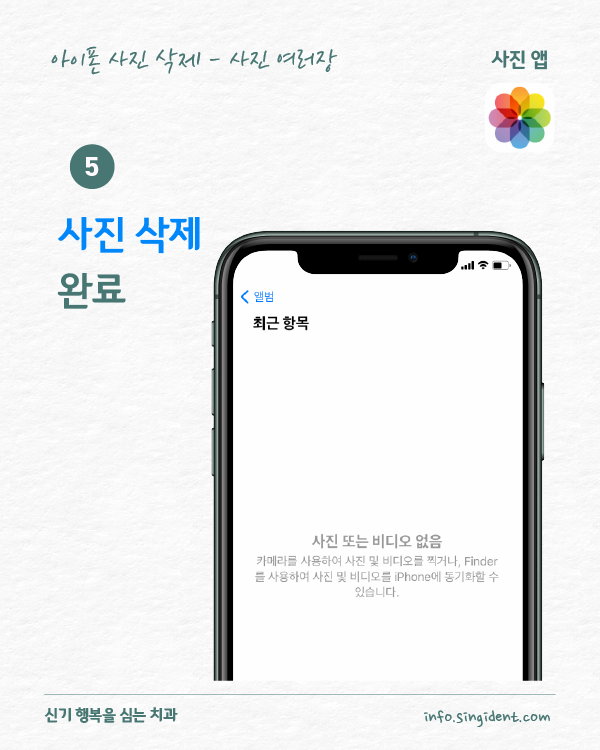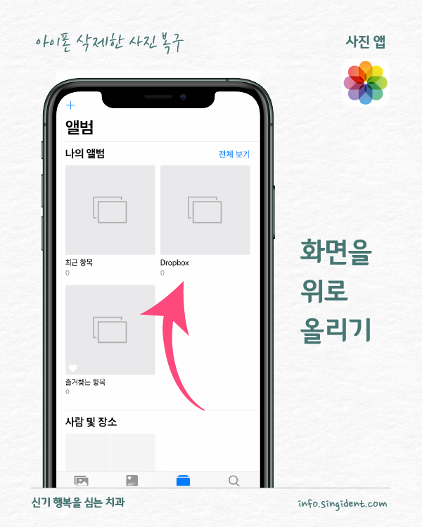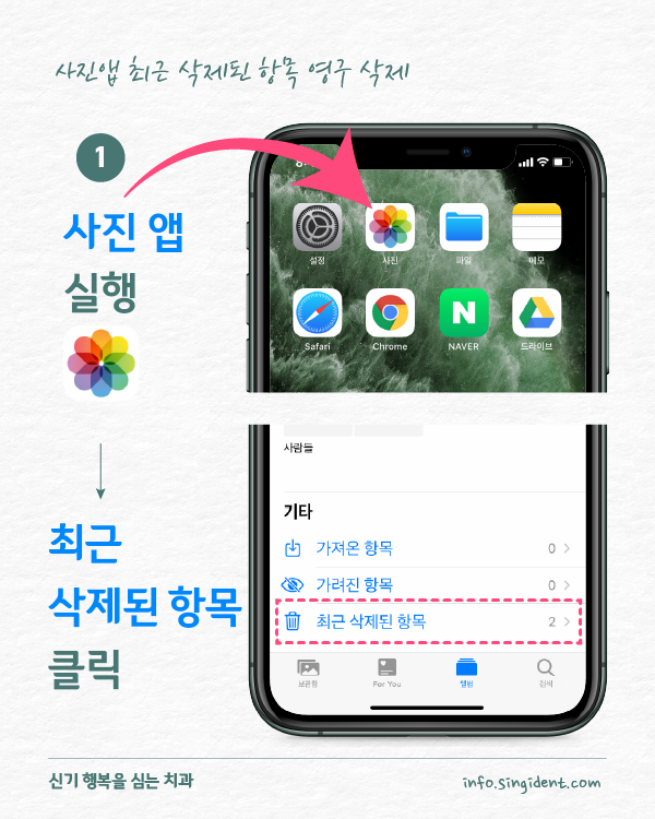 안녕하세요. 대구 동구 신기 행복을 심는 치과에서 전해드리는 생활정보, 아이폰 사용법입니다. 오늘은 아이폰 사진 앱에서 사진 삭제 및 복구하는 방법 그리고 최근 삭제된 항목에 저장된 사진을 완전히 삭제하는 방법 대해 알려드립니다.