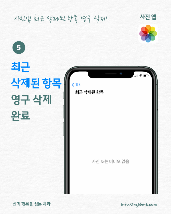 이상으로 최근 삭제된 항목의 모든 사진들이 영구 삭제되었습니다.