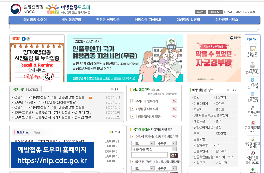 1 예방접종도우미 홈페이지 접속