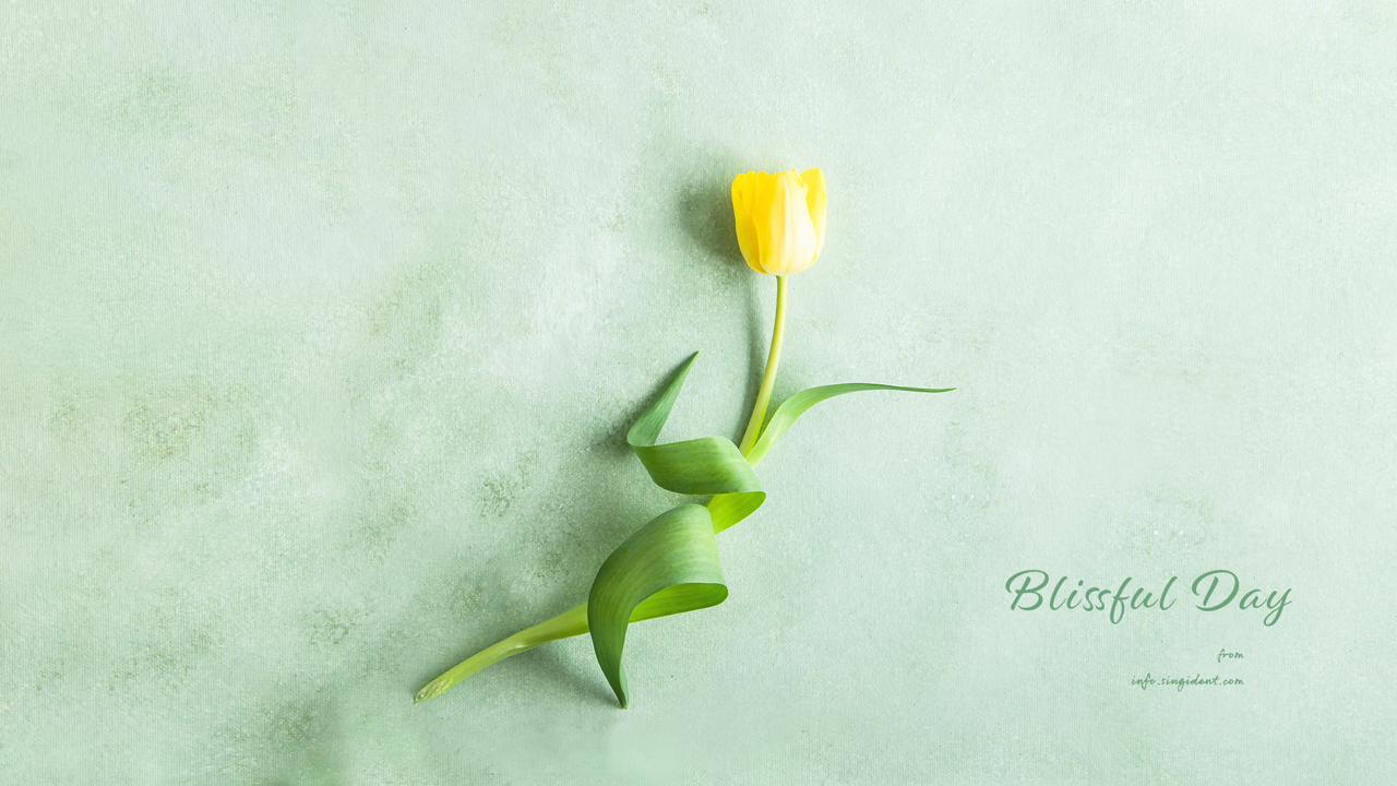 2월 여섯 번째 달력 바탕화면은 옅은 연두색 배경 위에 놓은 노란색 튤립 한 송이 이미지입니다.