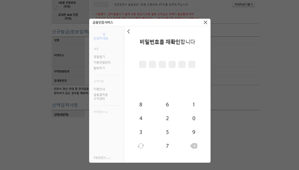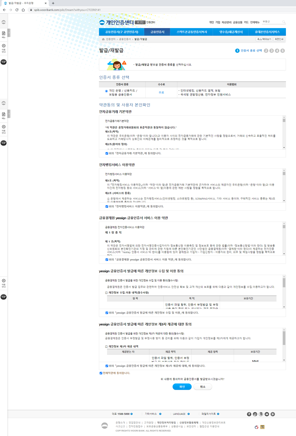 지금부터는 금융결제원에서 인증서 발급하는 단계입니다.