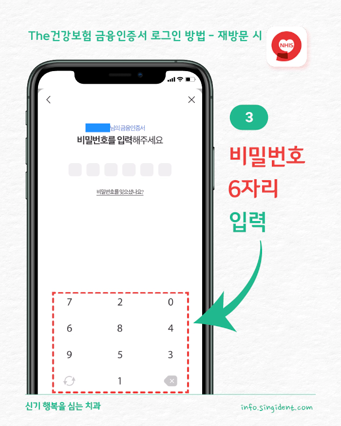재방문시 3. 금융인증서 비밀번호 6자리 입력