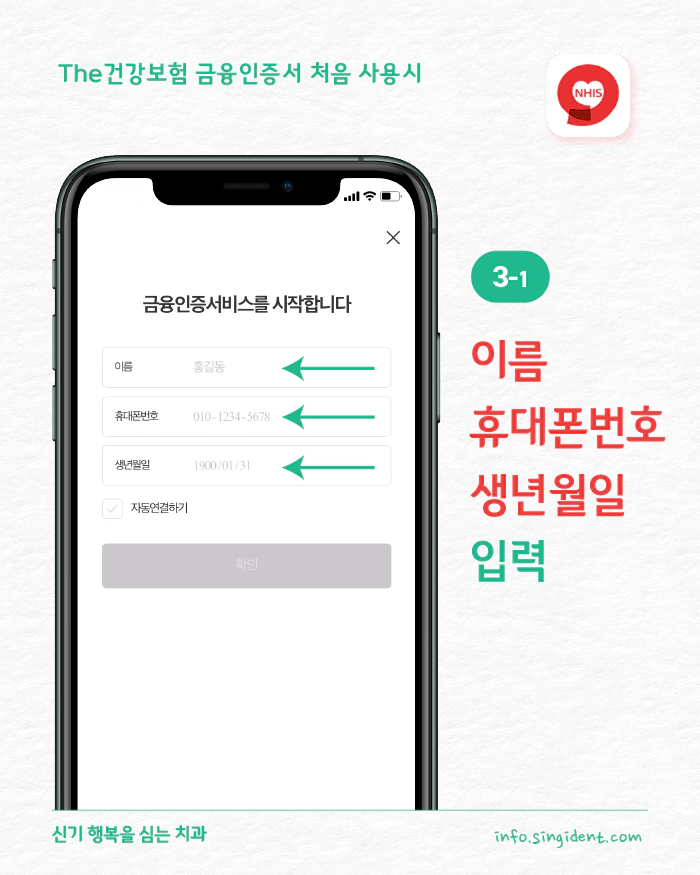 첫방문시 3-1. 이름, 휴대폰번호, 생년월일 입력